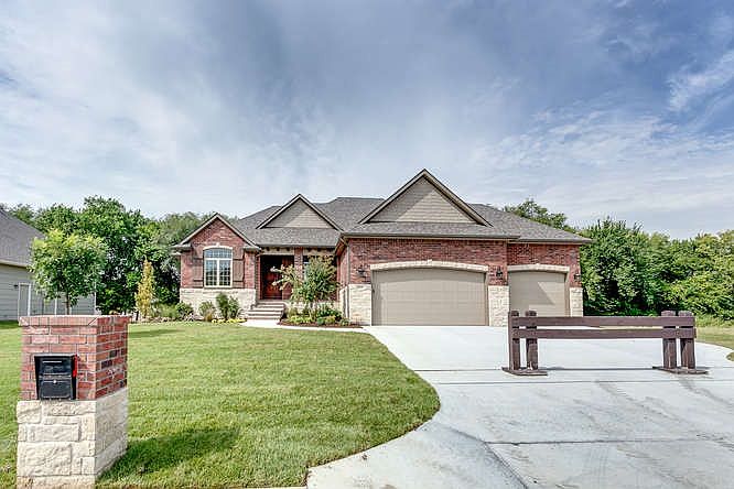 Fantastic open ranch offering grand open spaces and backing to a tree-line. Fabulous finishes thru-out this 5 bedroom 3 1/2 bath home. Offering unique ceiling treatments thru-out main level, custom built-ins by stone fireplace up, with an additional fireplace in the basement, custom built kitchen hood, walk-in pantry with work-space, granite counter tops in kitchen and bathrooms, and the list goes on!!! Great entertaining spaces in the basement lay-out as well!!! Corner fireplace with and an open bar area that is sure to please the pickiest buyer!! Two additional bedrooms with walk-in closets and one additional full bath. Gorgeous front brick and stone elevation!! Andover Schools.....Sedgwick County Taxes! All general and special taxes are estimated.