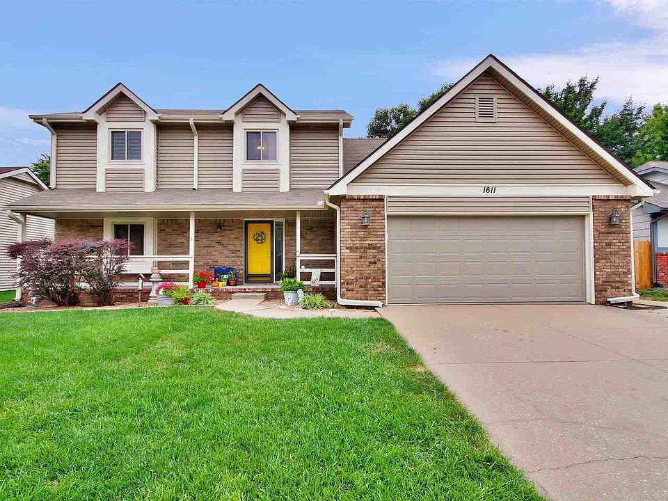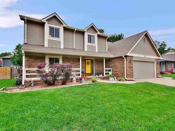 Very updated and well maintained 4 bedroom and 3 bath home. This home shows pride of ownership. There are new windows, vinyl siding and an updated kitchen with granite, new cabinets, and appliances.. Wonderful neighborhood with playground only a block away. The main floor features a formal living and dining room and 1/2 bath and large family room with fire place and an adjoining sun room. The basements finished with new carpet. There is a family room, full bath and storage. The upstairs have 4 bedrooms, 3 large bedrooms and a full hall bath and then a large master bedroom with full bath, double sinks and walk in closet. There is a 2 car garage, fenced backyard with a sport court. The porch is new, located in Maize schools and no specials.