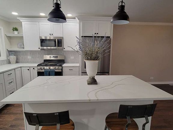 3BD/2BA RANCH (on crawlspace) fully fenced and completely renovated including: open floor concept; quartz countertops throughout; hardwood flooring and ceramic tile throughout; all new SS kitchen appliances, and recessed lighting. New electrical, plumbing, AC unit, windows (with village permits) brought to code. Newer roof and furnace. Crown, and decorative molding throughout. Attached 1-car garage with epoxy floors. Beautiful, quiet neighborhood within walking distance of Patton Elementary School.