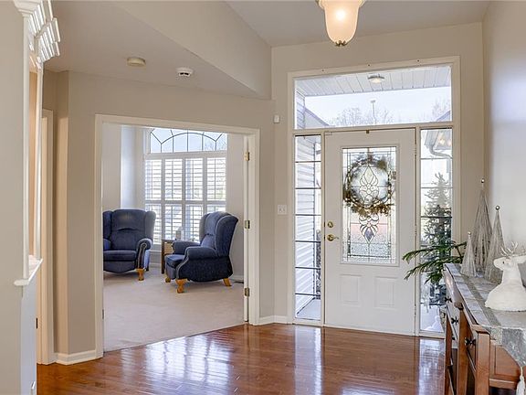 Fall in love with this Reverse 1.5 story home. The elegant entryway welcomes you right in! The formal living room and formal dining room add extra entertaining space. The front bedroom would make a perfect home office. The kitchen features stainless steel appliances, wood floors, and an ample amount of cabinets. Tons of closets and storage space throughout the home. Relax in the sunroom with your morning coffee and watch the seasons change or enjoy the swing in the backyard while sipping iced tea. The finished walkout basement features a second fireplace and is the perfect hangout area.