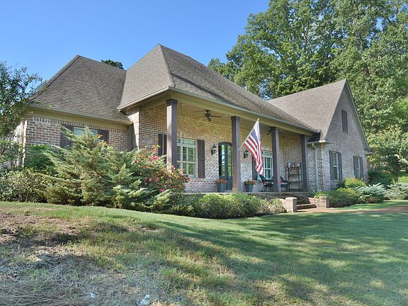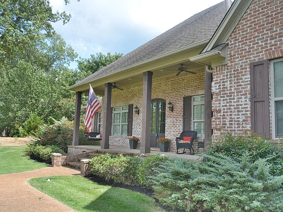Beautiful home in Hernando on 1.93 acres. Come home to a peaceful covered front porch, or large covered rear patio with a great view of trees. Entering the double door entry you will see a formal dining room to the right, an office to the left with french doors and large great room with gas log fireplace. The kitchen has a breakfast bar open to the great room, granite counters, built in oven, smooth cook top, built in microwave, all stainless, refrigerator, lots of cabinets and counter space, center island, and break fast area looking out over the backyard. Large master bedroom includes a master bath with six foot jetted tub, large master shower with regular and rain shower head. The split plan includes two more bedrooms down with a jack and jill bath. Wrought iron stair railing