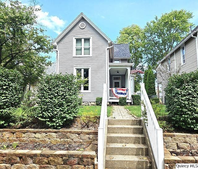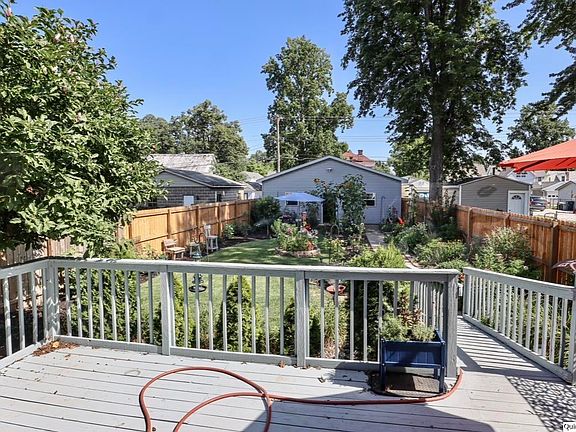 Charming home w/ secluded landscaped oasis in privacy fenced rear yard w/ fruit trees, garden area, large deck w/ ramp access & huge 3-car garage w/ loft. Updated kitchen w/ island & main level laundry w/ pantry storage. New siding & replacement windows 2010. New laminate wood flooring, C/A & roof 2015. Updates since purchased by seller in 2023 include new kitchen island, backsplash & refrigerator; new washer & dryer; 1st level bath remodeled; new pad & carpet in 1st level bedroom; new HE furnace; new wood privacy fencing; lots of new landscaping; front porch decking freshly painted w/ new railing & light installed; rear deck power washed & freshly painted; & gutters recently cleaned. Front door bell & audio/ video recording device do not convey.