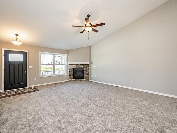Abode's Keystone plan in their newest development Foxtail Ridge just off Council Street features a walk-out lower level, a 10X12 deck off the kitchen, open floor plan, vaulted ceilings, stone fireplace, kitchen island w/breakfast bar, & a window over the kitchen sink. Spacious primary bedroom suite includes 2 closets, plus a bathroom with walk-in shower and dual sinks. 2nd bedroom, another full bath, & laundry complete the main floor. Lower level is stubbed for a full bath and can be finished to include a bathroom, family room, and a bedroom, leaving plenty of unfinished storage space. The builder has made selections from a high quality group of products, including granite countertops in the kitchen, Onyx vanity tops in the bathrooms, Adura plank flooring, and more. Appliances are available in stainless or white. This building has a passive radon system installed. $350 association start-up fee. Materials and selections subject to change without notice due to product availability.