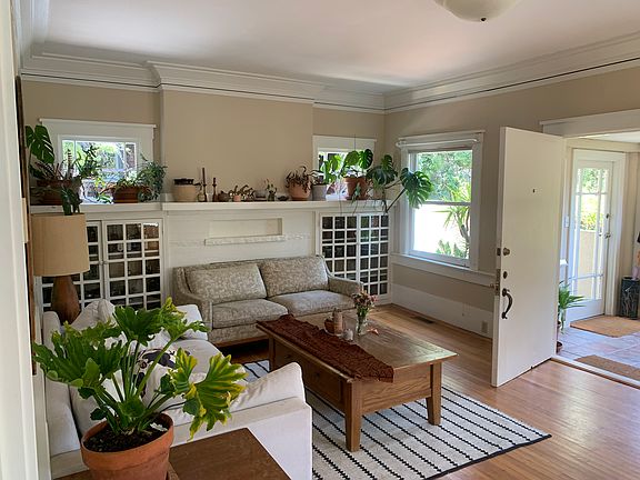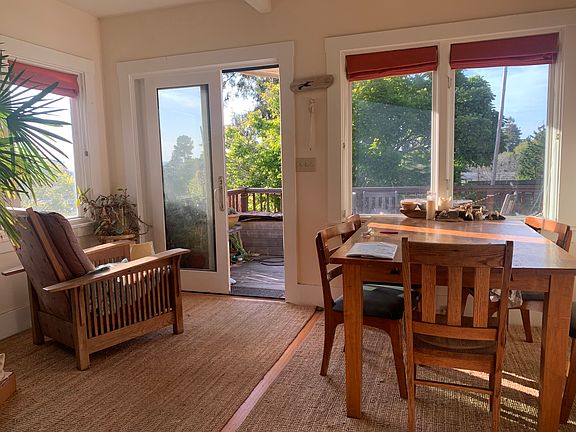 Partly furnished 132 sq ft private bedroom for rent has bright daylight from two quiet double-paned windows, a large closet with double sliding doors, a solid wood armoire with shelves, and a private bathroom with shower. Wood queen-size bed frame available. Shared space includes large rear kitchen/breakfast room with washer/dryer, dishwasher, and gas range, a front living room, and a middle dining room currently used as a work-from-home room. Back deck has view of the bay and Mt. Tamalpais surrounded by trees. Partly-shaded backyard has trees, plants, two gardening beds and a small cedar cabin that is currently unused, available as a study. Limited storage available in the basement, accessible from the backyard. Small shed for bike storage near the front door. Home is very well maintained, solar powered with battery storage. Please help keep the place clean, of course :) No smoking inside.