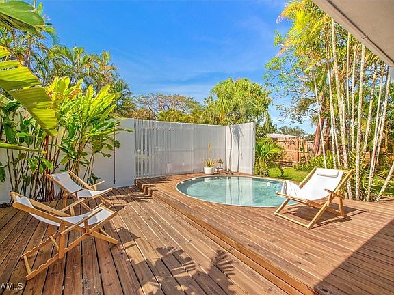 Fully remodeled home with a sophisticated European flair. The home was taken back to the studs and transformed into a light and cheerful home with a great room floor plan, 4 bedrooms (split plan), 2 bathrooms and huge backyard oasis. The home features IMPACT WINDOWS AND DOORS (except front door), luxury vinyl floors throughout, open kitchen with oversized island, and large closets with custom cabinets. The backyard is fenced and features a splash pool with wood deck surround and privacy panels, outdoor shower, huge covered lanai and firepit. The home has Solar panels that keep electric bills very low and is transferable to the new owner. The solar lease is $114 per month and the electric bill runs $20-$40 per month. So the lease + electric payments are significantly less than traditional electric and the lease only increases 2.99 percent per year. Solar is a great advantage and can be used as a base for adding charging batteries etc to charge your car! Sold FULLY FURNISHED AND TURNKEY (with a few exclusions) and a generator. Roof 2016. New plumbing and electrical. NO FLOODING! Sellers prefer a long close (June 1 at the earliest). Cypress Lake Country Club is near everything that south fort myers has to offer - BB Mann performing arts, FSW, FGCU, Hospitals, Fine Dining, Beaches and the International Airport.