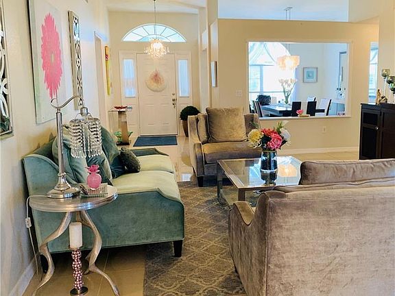 This beautiful clean and well kept 3 bedroom + den or 4 bedroom house has over 2300sqft. Tiled throughout the common living areas, carpet in the bedrooms, spacious living room, breakfast and dining areas. Granite counter tops in the kitchen and both bathrooms. The master bedroom is oversized with the bathroom having private toilet area, two sinks, separate garden tub and shower. The other three bedrooms or two plus office/den are on the opposite side of the house. An indoor laundry room that leads to the 2 car garage. Enjoy the screened lanai for relaxing or entertaining.