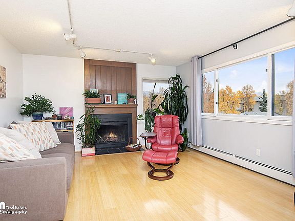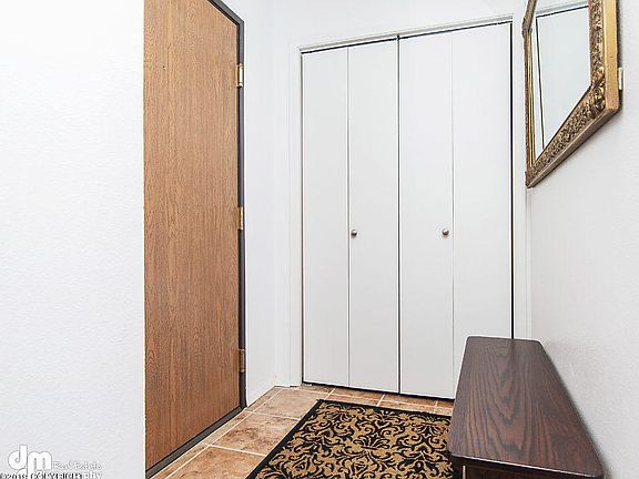 Update top corner unit in secured building with mountain views. Spacious entry with full-sized closet, laminate flooring in living room, updated kitchen (including appliances) and bathroom (also with good storage). Spacious south-facing deck off dining room.