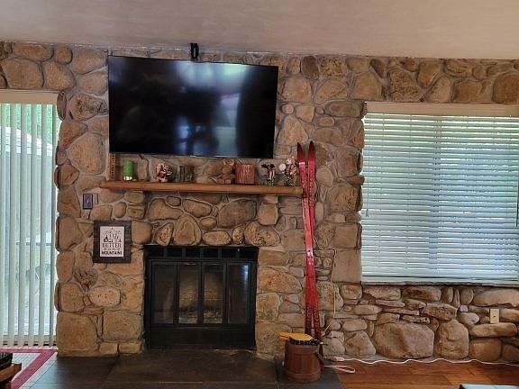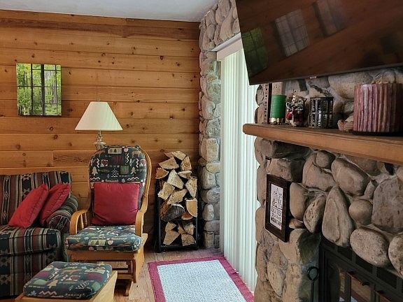 This end townhouse is finished with exceptional quality, featuring a gorgeous stone fireplace and stone accent wall in the living room, along with unique cedar tongue & groove walls that create a cozy mountain cabin feel. The ceramic tile flooring in the kitchen, entryway and first-floor half bath is also used in the second-floor bathrooms, while all three bedrooms feature thick, warm carpeting. The solid four-panel doors throughout, along with swirled, textured plaster walls and ceilings in place of standard drywall make this townhouse stand out as one of a kind. This enjoys a quiet setting with no front through traffic, while the fully railed rear deck faces the trees for added privacy. Convenient location to both the member and clubhouse pools without driving, this beautiful townhouse is ready to make lasting memories.