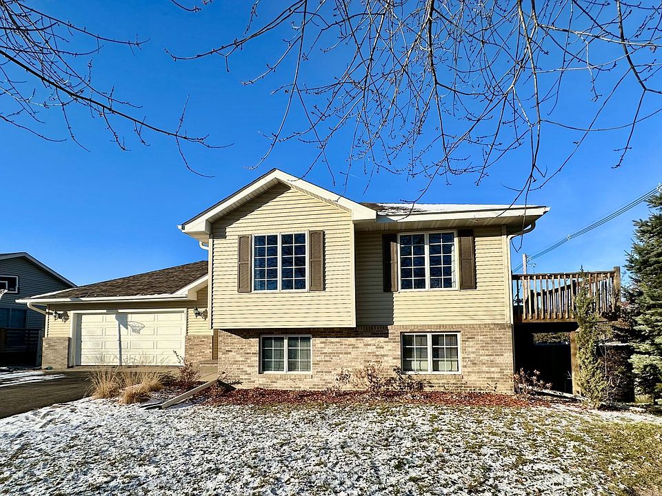 Well maintained home with a great location! Oversized foyer allows ample space to set things down after a long day. Cross through the spacious living room into the kitchen where meal prep is a breeze as the kitchen has plenty of counter space! Extra cabinet space allows storage of your kitchen gadgets. Kitchen opens onto a comfortable deck, a great space for grilling or enjoying a cup of coffee. A full bath and three bedrooms make up the rest of the main level. The lower level features in-floor heating, two large bedrooms, a three-quarter bath, and a sizable utility room for laundry. There is also a good-sized family room with a walkout onto a back patio. Enjoy the hot tub in the spacious backyard with a wood privacy fence. The garage is a spacious 2.5-car garage with extended storage. Roof replaced in 2023, furnace and water heater in 2018. Nicely landscaped with in-ground sprinklers. Easy access to schools, trails, the university, and shopping as well as to Highway 35.
