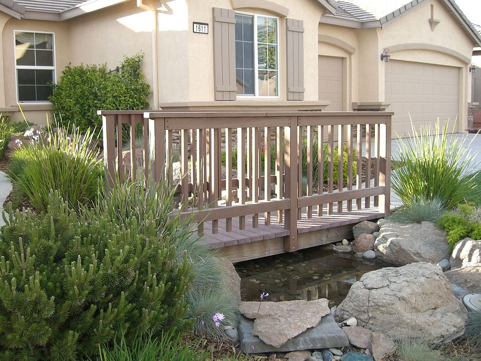Beautiful Reynen and Bardis former model home. Built in 2004 but not lived in until mid 2007. Upgrades throughout including granite countertops, wood, tile and slate flooring. Fully landscaped front and backyard including stamped concrete. Flowing creek in front yard with foot bridge. Finished garage walls and epoxy flooring. Brand new Edgewater Elementary opened fall 2009 within walking distance. Retreat in master bedroom instead of fourth bedroom. Beautiful home that is move in ready, no work needed. Will include all appliances (Washer/dryer/fridge/brand new with home).
