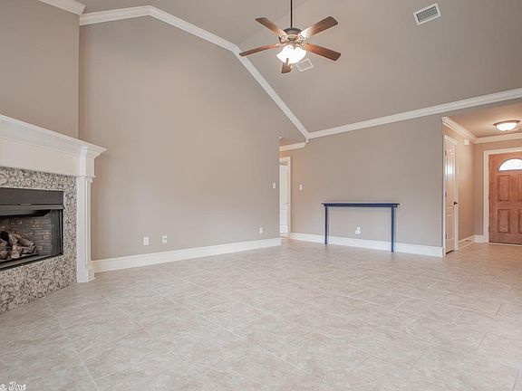 This floor plan is sure to please! Great Room is spacious with gas log fireplace. Tile floors throughout living space and wet areas. Kitchen has granite countertops. Laundry/Butlers Pantry serves two purposes and has granite counter. Two car garage. Large master with great master bathroom with huge shower. Backyard has a babbling creek in back heard from your covered deck. Very natural setting.