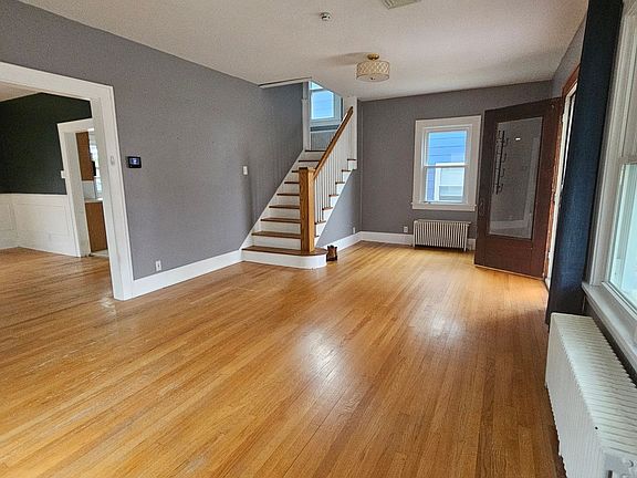 This wonderful home is located just 2 blocks from Eisner Park, restaurants, shopping and schools! When you walk in you will be amazed with the beautiful hardwood floors in the living room and dining room. The open stairway leads to the second floor where the hardwood flooring continues in the hallway and three bedrooms. The second floor has a full bath from the hallway while the main bedroom has a private full bath. The basement has a family room area with wood paneled walls and ceramic tile flooring along with a half bath, laundry area and storage. The backyard has a privacy fence and an oversized garage has space for a workshop area and plenty of storage for tools and toys. Tenants responsible for all utilities ($50/mo added to rent for sewer) and yard work. Pet friendly (monthly fees applicable)! Call today to schedule a tour - this one won't last long!
