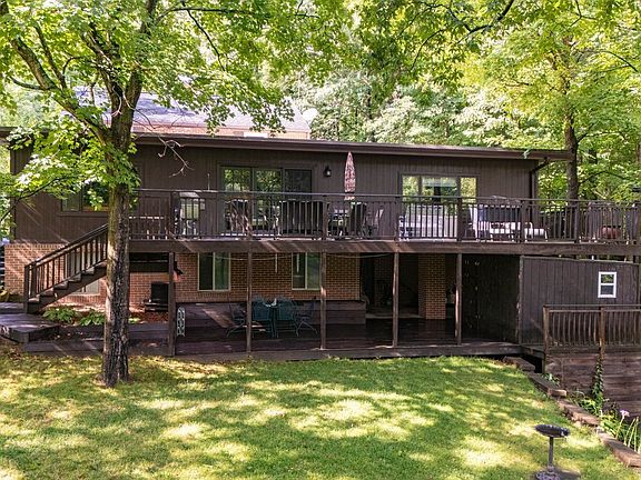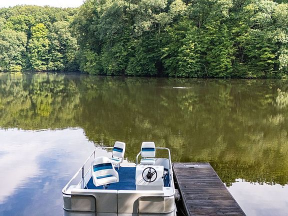Imagine yourself in the middle of woods surrounded by a beautiful lake and majestic trees . This unique property is LAKE FRONT spreading out over 3 lots giving you equisite privacy. Home includes 4 bedrooms, 2 bathrooms, full basement, newly custom renovated kitchen, upper and lower wrap around decking, your private boat dock , pontoon , kayaks, and 2 johnboats are included. Relax at the dock, swim in the clean aerated waters, troll across the lake, fish, kayak, or just catch some sunshine. Roof replaced in 2023 with new underlayment, aluminum overhang new 2019, hard surface countertops, french doors in living room, cement hardy board siding installed 2019, insulated sunroom with a pellet stove, 3 electrical panels, windows 2008, new lennox water heater, air filter for furnace, REMC fiber internet installed with buried electrical. This property will not last long! Come make it your forever home or your family getaway!
