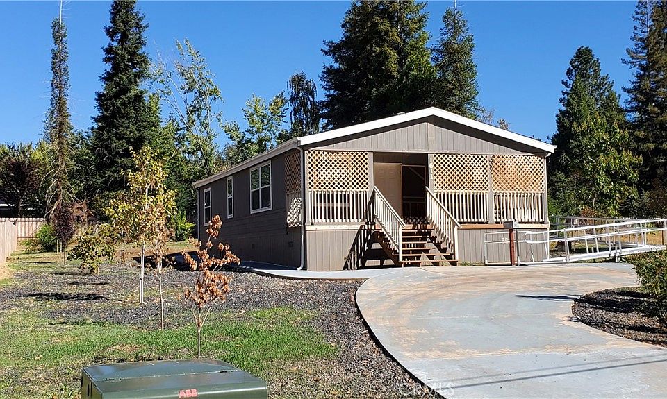 Newer 2 bedroom plus a den and 2 baths on a beautiful, level half acre at the end of a private road! The front of the property has a fabulous concrete U-shaped driveway for easy access and parking. Enjoy your morning coffee on the covered front porch. As you enter the house you will enjoy a large freshly painted living space, perfectly laid out for entertaining with an attached bonus room/office/den. The kitchen has an abundance of storage and is a chef’s dream with abundant counter space and convenient center island. Just off the kitchen you have the indoor laundry space and storage shelves. The large master bedroom has an en suite bathroom with a wonderfully useful walk in tub. The guest bedroom is spacious and the guest bath has a lovely shower over tub. The home features many disability features such as grab bars lower kitchen counters and a ramp at the rear of the home. The walkways around the home allow for ease of access. This home has been gently used by one owner and was not completed and issued its occupancy permit until October of 2020.