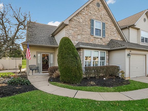 Yorktown is a beautiful 55+ community, designed on 2 large circular courts, with a walking trail and adjacent township park. This end unit location & expansive windows lets lots of sunlight in. This home boasts a wonderful open floor plan with high end architectural features. Includes 9 foot ceilings, with tray ceilings, transome windows, crown molding, upgraded base and door trims. The bright and cheerful kitchen includes plenty of cabinets with crown molding trim and a large triple window with plantation shutters. All interior doors are widened for wheelchair accessibility. The convenience of 1st floor living includes your owners suite with 2 walk-in closets and large triple window. The Owners bath features an oversized shower, extra wide vanity and linen closet. The laundry room & guest bedroom are also located on the 1st floor. Along with a full hall bathroom. The upper level offers a 3rd bedroom & full bath which is perfect for visiting family or friends. The garage offers protection for your car from the inclement weather. Enjoy coffee or dinner on the patio just off of the great room, featuring a retractable awning and privacy fence. NEW REPLACEMENT WINDOWS. NEW ROOF (2016) Newer HVAC. Custom draperies throughout. You will truly enjoy the wonderful design of this home and the convenience of easy living in this worry free and maintenance free home. HO ASSOC FEE INCLUDES: Trash, snow removal including driveway and to your front door, weeding, mulching of flower beds, shrubbery trimming, includes exterior maintenance, Includes alarm system with emergency buttons. The location of this community provides plenty of shopping nearby. Just a short drive to Doylestown, Peddlers Village and New Hope. Come and enjoy this relaxing lifestyle.