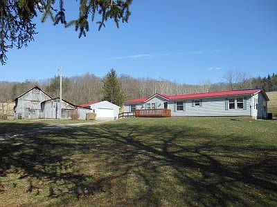 ROOM FOR ANYTHING...kids, garden, pets. Be the first in the door to see this 3 bedroom, 2 bath 1998 well maintained, manufactured home on 98 beautiful acres (a hunter's dream) complete with trails, streams and even a cabin in the woods with electric! Four car garage with concrete floor and a very large barn. Plenty of nicely manicured outdoor space for your children to play. All of this and FREE GAS, and mineral rights convey (ato).