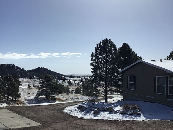 Completely (every room) and beautifully remodeled ranch-style home! Backs to mature ponderosa pine and majestic 200 ft high rimrock in equestrian easement community adjacent to miles of riding/hiking/biking trails and a playground at Homestead Ranch Regional Park. Secluded and nestled into the best natural terrain in northern El Paso county, at the end of the road on 5 fenced and gated acres of rolling hills, mature trees and enough meadow for your horses. Sunny (4 x 4 foot skylight) and open re-designed kitchen is family and entertaining-friendly with Whirlpool Gold Series Black Ice appliances, knotty hickory cabinetry, gas stove, gorgeous quartz countertops, and custom 7-seat (53" x 74") dining peninsula with ample storage underneath. Vaulted ceilings and upgraded doors and trim throughout this nearly 1500 sq ft 3 bedroom 2 bath home, surrounded with amazing views from decks on two sides. 720 sq ft paved two-car-plus-workshop garage and plenty of additional parking is near the house. Master bath recently upgraded to rustic wood-look tiled walk-in shower. Located in northeast Peyton, near Hodgen and Eastonville. Approximately 15 minutes from Safeway, Walmart, banks, restaurants, salons, Walgreen's, a golf course. Approximately 25-30 minutes to Peterson AFB, Schriever AFB, and the USAF Academy.