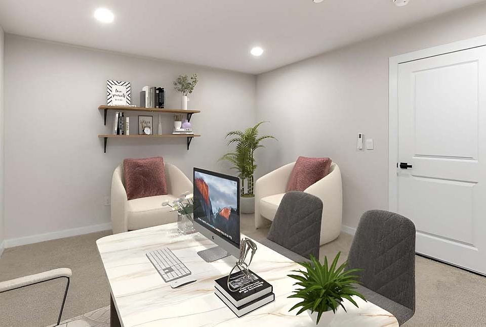 Modern kitchenPowder roomVersatile flex roomPrimary suiteWalk-in closetEn-suite bathDouble vanity