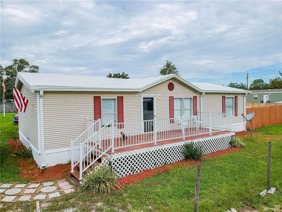 Wonderful, well maintained move in Ready Mobile Home located in a quiet area just off the Suncoast Parkway. BRAND NEW ROOF and rain gutters installed April 2020 (Includes lifetime warranty that transfers to the new owners). Offers 3 beds (Master and Bedroom 2 have walk-in closets), 2 baths and and beautiful open floor plan with vaulted ceilings. Laminate flooring in bedrooms 2 and 3. Lovely Tile throughout the rest of the home. Enjoy the large garden tub in the master bath and brand new tub and shower in the 2nd bathroom. Spacious, lovely kitchen opens into the family room and looks into the dining room for all your cooking and entertaining needs. Recently renovated front porch perfect for relaxing with a fresh cup of coffee. Entire lot is fenced with a gate to enter the property. Privacy fence surrounds the backyard. Includes a large custom shed for plenty of extra storage. This house is a must see and is ready for you to move in!!!