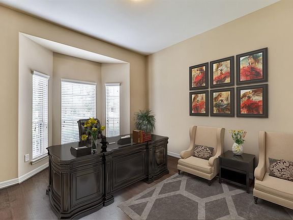 This gorgeous one story home is located on a cul-de-sac in the desirable community of Stone Creek Ranch. Features include 4 bedrooms, 2.5 baths, 2 car garage with hand-scraped hard wood floors in all of the main living areas, open floor plan, private study with French doors, dining room with butlers pantry, gourmet kitchen with island, gas cook top, breakfast bar, SS appliances, breakfast nook, spacious living room with cast stone gas fireplace and walls of windows for natural light. The luxurious master suite is separate from the other 3 bedrooms as it's situated near the rear of the home which offers privacy. The master bath has a separate tub and shower, a large closet, and dual vanities. Covered back patio with sprinkler system, no rear neighbors and pool ready. Haier Water Softener System. Easy access to 290, Grand Parkway. Great community amenities. Never flooded. Call for an exclusive tour of this lovely home.