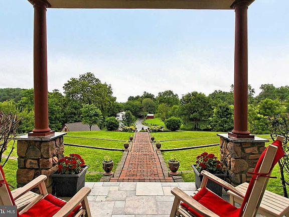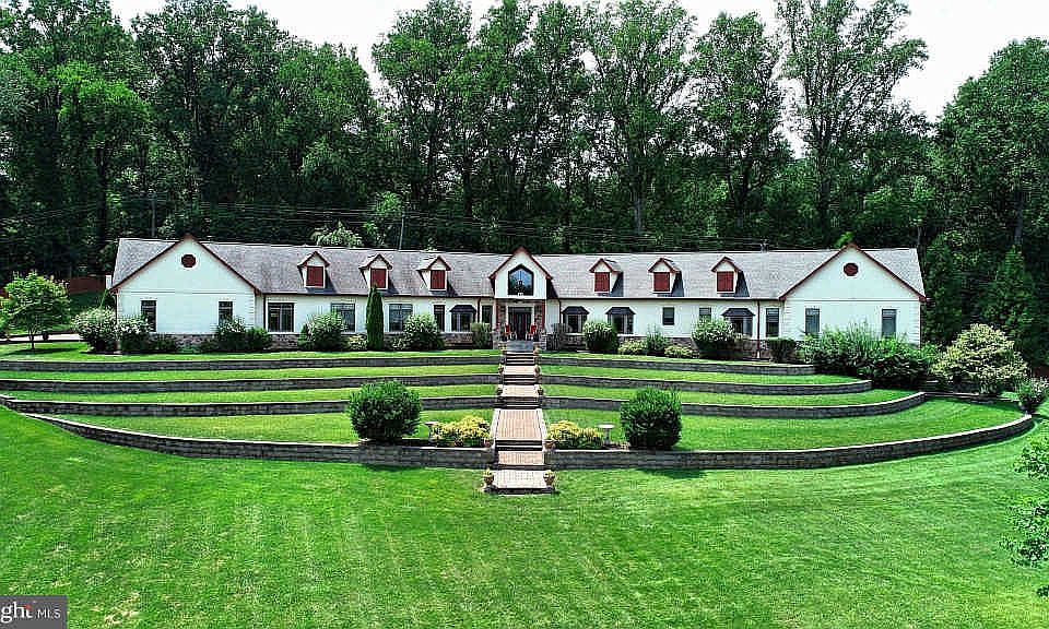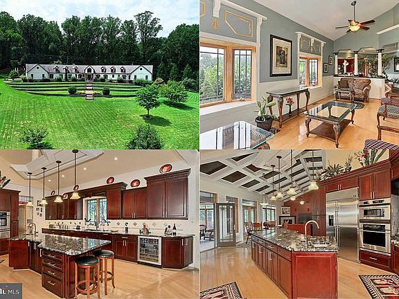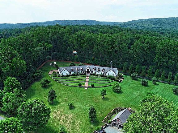 Gorgeous custom home on private hill top overlooking scenic 3.81 landscaped acres! 3 car attached + 2 car detached garage! Stunning architectural details & upgrades, 3 FP's, 6 full BA's, 12'+ custom ceilings, formal LR, DR. Chef's kitchen w/pro SS appls, 3 ovens, 2 dishwashers, granite opens to fam rm & sun rm! Luxury MBA! Walk out LL w/huge rec rm, 2nd kit, media rm, BR, BA! Deck, balcony, patio!
