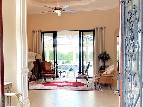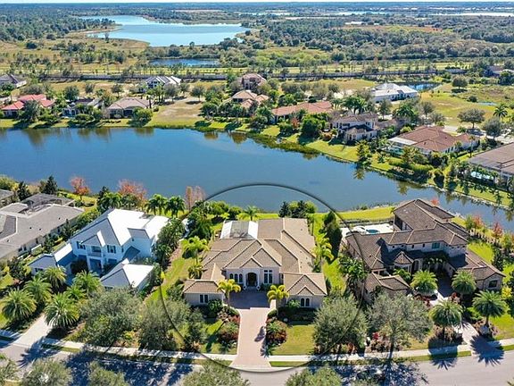 A stunning reflection of Lakewood Ranch elegance, this 2013 John Cannon built lakefront residence exudes a gracious indoor and outdoor lifestyle. With over 4000 sq. ft. of one level living, the open floor plan offers plenty of comfortable entertaining space. Your breath will be taken away upon entry as you are greeted by the spectacularly impressive lake view & salt water feature pool and spa. Overlooking the grand formal living room your first impression is heightened by the majestic floor to ceiling stone fireplace & the dramatic elegance of a 15 ft. double tray ceiling. This home offers 3 rooms with walls of pocketing glass doors to your outdoor entertainment areas. Prepare meals in the gourmet kitchen with island & breakfast bar detailed with unique granite, custom cabinets and a spacious walk-in pantry. The coffered ceiling family room with built-in entertainment center, is perfect for spending hours enjoying movies on your large screen tv or the company of loved ones. Formal dining room with hardwood floor and soaring tray ceiling. Den/Office with radius windows and hardwood. A large bonus room features views of the lake & lanai area, with options for a media or gaming room. Luxury continues in the master suite with a wall of windows overlooking the lake and 2 walk-in closets. The master bath boasts an added bonus storage/dressing room. The Lake Club is nestled only minutes away from the LWR Golf and County Club. Come live, work and play in one of the most exclusive communities in the area.