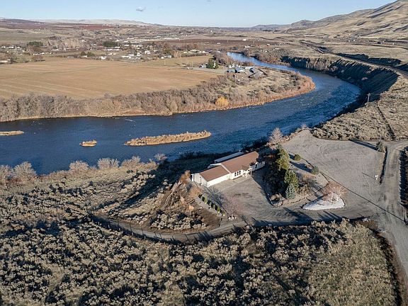 MLS# 265880 $10,000 buyer credit! Beautiful riverfront property! 7.37 acres with amazing views of the Yakima River and Cascade Mountains! The home has large windows in the living and the kitchen to ensure beautiful views from many vantage point! Cozy up next to the fireplace in the living room and watch for Bald Eagles as they swoop the river below. Wonderful covered deck off the kitchen for entertaining or relaxing after a long day. The spacious kitchen has ample cabinet space, island and walk in pantry with sink facing oversized windows overlooking the river. The primary bedroom is on the river view side with an a attached area for an office, baby room, or whatever fits your needs. Large soaking tub with dual vanities and private shower room in the primary. Two generously sized bedrooms as well!