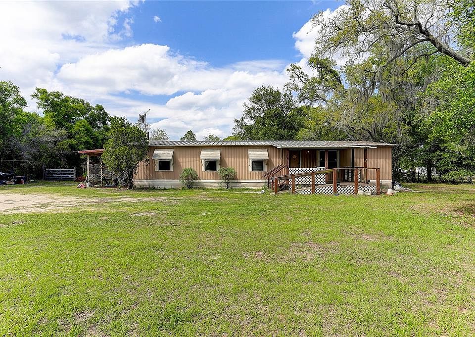 Calling all investors or business owners that need to park their company equipment, only subject to the rules of Pasco County. 1+ Acre zoned AR (agriculture residential). Perimeter fenced and cross-fenced with a 1981 doublewide mobile/manufactured home. There is also a 2006 Fleetwood travel trailer with an addition. Two driveways with gates, 1 to the mobile home and 1 to the travel trailer. This property is being sold as is, cash or hard money financing only with no financing contingencies in the contract.. Doublewide has 4 bedrooms and 2 baths. It also has a metal roof over. Excellent opportunity for the professional flipper. The well and drain field have both been replaced in the last few years. It is hard to find a fenced acre where you can bring your toys or your equipment and be left alone. No deed restrictions, no HOA fees, no CDD fees.
