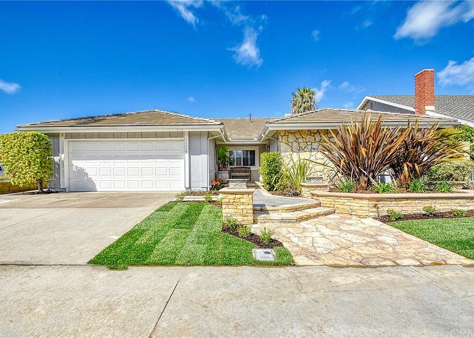Video Walk-Thru Tour Gorgeous Highly Upgraded Single Story Pool Home w/Open Concept Living Space. It has been Beautifully Appointed Throughout, Including: Central A/C, Travertine Flooring, Dual Pane Windows & Sliders, Plantation Shutters, Smooth Ceilings, Recessed Lighting, Ceiling Fans, Raised Panel Interior Doors, Mirrored Closet Doors, all Newer Copper Plumbing (Re-Plumbed ABOVE Slab), and all Newer Electrical, Plus Sub-Panel, Newer Heater (moved to Attic). It Boasts a Completely Remodeled Kitchen with Granite Countertops & Backsplash, Extra Long Breakfast Bar, Rich Cherry Wood Cabinetry w/Pull-Outs, 2 Pantries (1 is Walk-In & 1 w/Pull-Outs) & Stainless Appliances (Electric Stove, Microwave, Dishwasher). It Includes a Lovely Formal Living Room, Formal Dining Area, Inside Laundry Rm & Large Separate Family Room w/Stone Fireplace, Soaring Vaulted Ceiling, and Slider to the Wonderful Tropical Entertainer's Backyard with Sparkling Pool & Spa, Covered Patio, & Block Wall Fencing. Both Bathrooms have been Upgraded w/Newer Tile Flooring, Custom Vanities, Designer Fixtures and Tile Surrounds with Mosaic Tile Inlay. It Also has a Pull-Down Ladder to Stand-Up Attic, 2 Car Garage with Roll-Up Door, Newer Tile Roof, Rain Gutters, Manicured Landscaping, and More! It is Situated on a Quiet Interior Lot in Great Neighborhood with Award-Winning Schools (all 9 & 10 Ratings). Short Drive to Beach. Close to Shopping/Dining