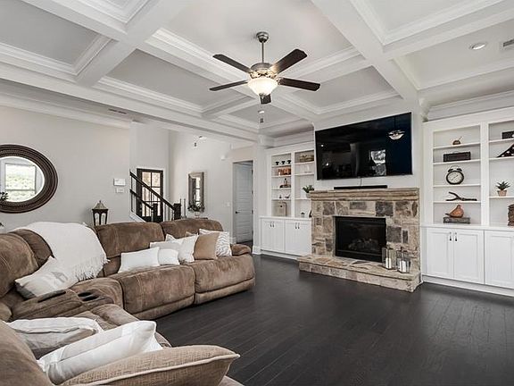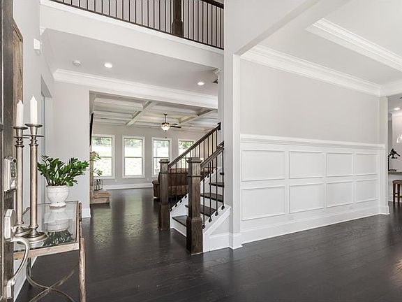Estate-inspired home on 1.32-acres in Grand Reserve Swim & Tennis Community - prestigious Milton High district. Coventry Building Plan includes bedroom/bathroom on main, covered deck, large kit island, sunroom, "hidden" pantry, banquet-size dining & 3-car garage with treated floors. Open floor plan with Showcase quality fixtures & finishes / Designer features, hardwoods, extensive trim pkg, plantation shutters & soaring ceilings. Great room w/coffered ceiling, custom built-ins, stone fplc & wall of windows. Sleek kitchen designed with stainless appliances, crisp white