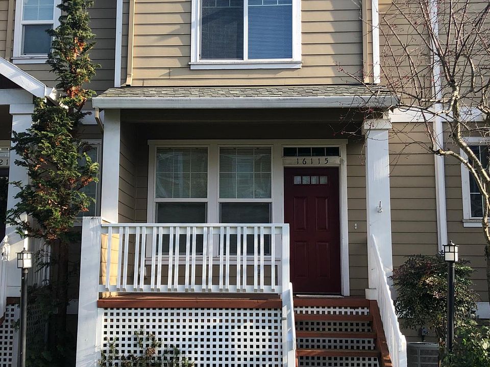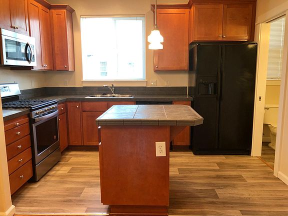 Merlo Station Townhome is in a very convenient location. Walk to Costco and MAX station. Near Intel, Nike, highway access, shopping places. Double master suites with vaulted ceiling, bonus room downstairs, 1-car garage, street parking. Built-in shelf in dining area. New paint in entire house. New carpet and new laminated floor upstairs, main and downstairs. New stainless steel gas range. Stainless steel microwave. Refrigerator with ice maker. Tile foyer, counter tops, and kitchen island. Forced-air heating and central A/C. Gas fireplace and gas hot water heater. Front porch looks out to a lawn. No Smoking. Tenants pay all utilitie 18-month lease. Security deposit: one month rent. $50/adult application fee. One small dog allowed with pet fee and pet deposit.