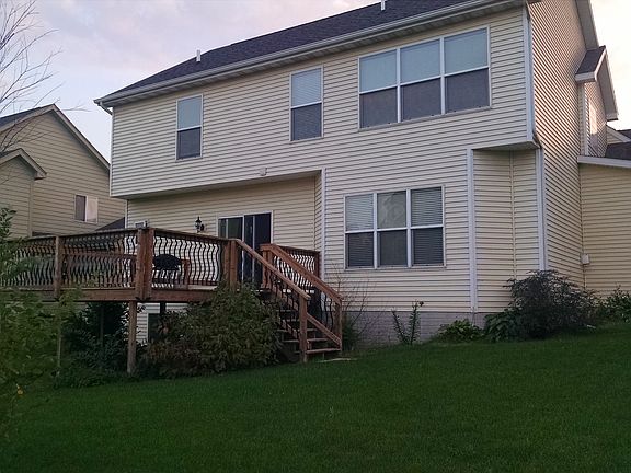 Great location in family friendly neighborhood! Close to grocery stores, gas stations, restaurants, walk/biking trails, parks, and more!! Newer (2005) 2 story home with nearly 3,000 sq. feet including 650 sq. feet daylight basement with 5 BRs and 4 baths. Master BR has a HUGE (11'x'14) walk-in closet, large bathroom w/ separate shower & 6" bubble tub and dual vanities. Large kitchen has maple cabinets & floors w/ stainless steel appliances and large center island. Kitchen is open to large family room w/ gas fireplace. Formal dining room w/ large windows. First floor laundry w/ wash tub. Daylight basement has 3/4 bath, 5th BR and 2nd family room. Also has lawn irrigation system, security system, recently stained deck, 3 car garage.