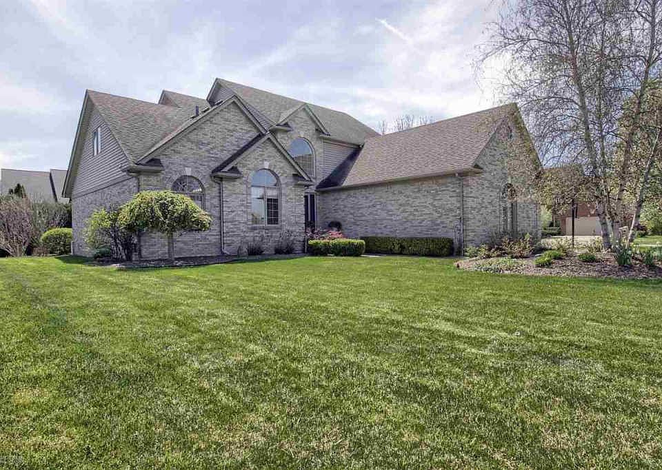Lovingly-maintained brick split-level with tons of living space! Corner lot property with beautiful landscaping, privacy hedges & side-entry 3 car garage. 2 Story foyer leads into a light-filled Great Room w/gas FP. The den/office with French doors is also located off the entry. Open living space from Great Room to Formal Dining Area with tranquil views of the back yard. A cook's dream kitchen features granite counters & backsplash, island, dual wall ovens, gas cooktop. Breakfast nook door-wall leading onto roomy brick paver patio - plenty of space for cook-outs. Master suite on main level has walk-in closet, dual vanity, corner jetted tub & separate shower. 3 roomy BR's upstairs & loft. Basement finish provides a fantastic entertaining space w/wet bar & media center. Main floor laundry room. All appliances including basement refrigerator to remain. Sellers are original owners of home. Occupancy may be sooner.