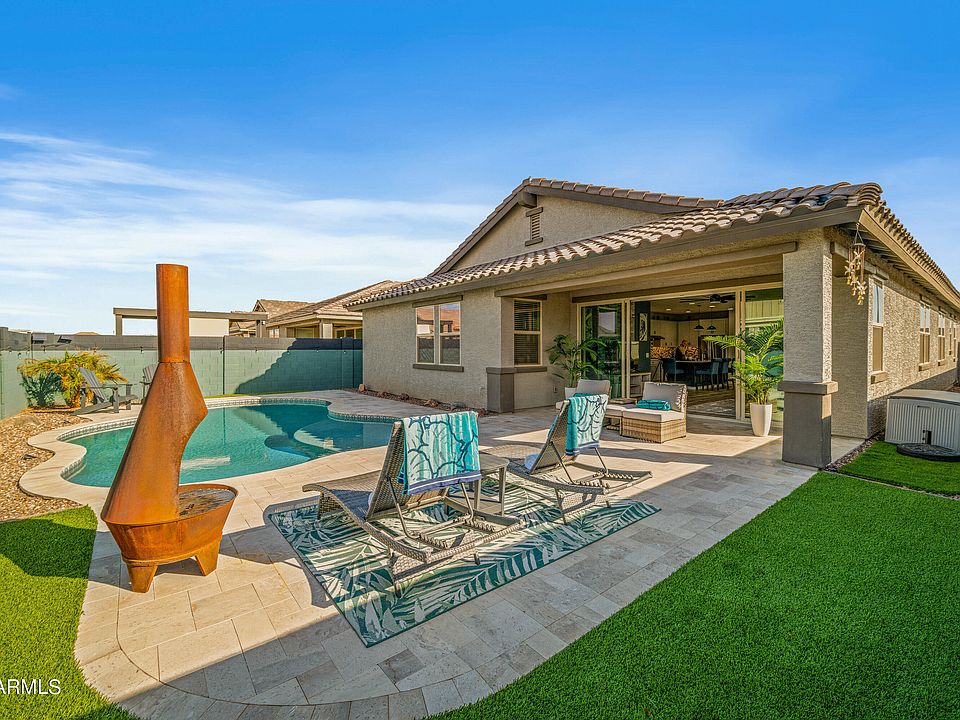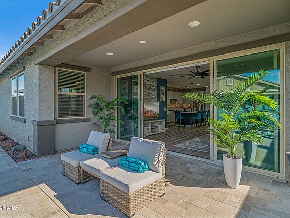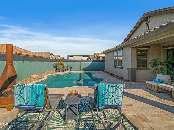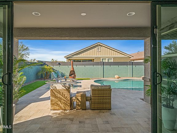 This Lovely Home features 3 Bedrooms, 3 Baths, 2 Bonus Rooms, Gourmet Kitchen with Sparkling Blue POOL nestled against an Open Area. This Nearly New Home boasts Artistic Custom Wall Features, Soft Eyebrow Arches, Gentle Color Palette, Wood Plank Vinyl Flooring, Full Wall Double Glass Sliding Doors, Upgraded Fans and Lighting, Travertine Decking and Artificial Turf. A Generous Entry leads to the Open Concept Living area complete with a multi use Bonus Room with Quartz Ledges. Gourmet Kitchen boasts 5 Burner Gas Cooktop, Stainless Steel Appliances, Wall Ovens, Tile Backsplash, Large Walk In Pantry, Island, Quartz Counters, Granite Sink, RO system, Pale Grey Cabinetry and under Cabinet Lighting. Primary Ensuite includes a Spa Shower, Double Sinks and Walk In Closet. Near Shopping and the 303