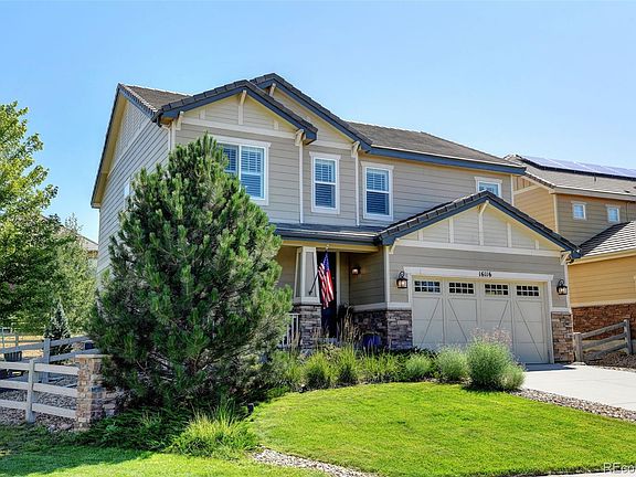 You must come see this gorgeous show home in one of Broomfield’s most desirable neighborhoods! Seller is also offering a concession for a year rate buy down or to be used for buyers closing costs. This stunning home is situated on a premium lot, where you’ll enjoy space from your neighbors on almost all sides with a walking trail behind you, and only 1 shared fence. There are many custom updates throughout including plantation style shutters, wainscoting, custom beams, tiling lighting, and more! The highly functional, open, floor plan is perfect for entertaining with open sight lines, a large island, fireplace, bump out space with dining room and office on the main floor. The gourmet kitchen is a chef’s dream with double ovens, farm style sink and expansive island with plenty of countertop space! Your upstairs features Mountain View’s from the loft and two of the 3 bedrooms. There is also a large primary suite with custom shelving in the primary walk-in closet. Your finished basement has a large open area with a theatre space, workout area, guest bedroom and bathroom. The oversized back yard is thoughtfully designed and includes a large stone patio with a custom built in outdoor fire pit to enjoy your storied Colorado nights. Not to mention you’ll take advantage of shaded Summer evenings relaxing outside due to the home facing West. As a bonus, the backyard also features a custom stone sitting area with views of the mountains to take in those picturesque sunsets. Anthem Highlands has no shortage of trails with over 55 miles to enjoy! The community clubhouse is one of the best in Metro Denver with two pools, basketball courts, office meeting space and a full weight room. It’s conveniently, and centrally, located within about 20 minutes of Downtown Denver, Boulder, and Denver International Airport. Don’t wait, schedule a showing, and come see everything this home offers!
