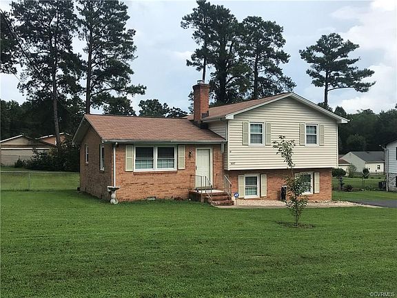 Spacious Chester tri-level home with enormous paved drive and huge fenced rear yard. Mostly Brick with some vinyl siding, vinyl windows and aluminum trim makes this home nearly maintenance free. New carpet in living room, New vinyl in the large kitchen, Wood Floors upstairs and in all bedrooms and Ceramic tile in the bottom level. Roof replaced in 2009 and Heat Pump replaced in 2009. 4th Bedroom is on bottom level, does not have closet, could be used as bedroom, office or utility room for storage. Very large eat-in kitchen with additional cabinetry and pantry cabinet. Enormous rear yard with patio and completely fenced for the critters. Super house with lots of yard and lots of space for the money.