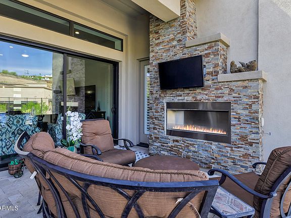 Step outside to your private backyard oasis complete with a heated jetted spool, built-in BBQ, gas fireplace, outdoor TV, synthetic turf, and travertine patioperfect for year-round Arizona living.