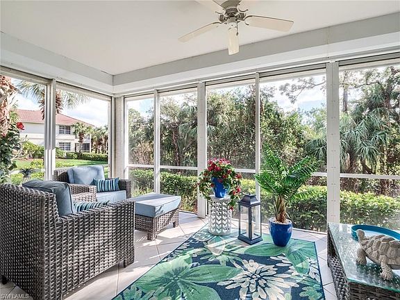 Perhaps the best furnishing and decor currently available in a Crown Colony resale, this 2+den, 2 bath condo has been recently and totally decorated with very high quality furnishings and been very lightly used. If you have no furniture to bring, the furnishings, inside and outside, are included for a quick move-in for this season. Electric roll down shutters on the lanai make this an easy home to button up prior to any storms or your seasonal departure. The low quarterly dues include building AND flood insurance, landscape, and water, plus provides 24x7 attended gated access, a community pool & hot tub, 4 Har-Tru tennis courts, and a well-equipped fitness center open 24x7 plus Comcast fiber-optic cable and the Xfinity X1 platform with up to 4 TV/DVR boxes, and high-speed Wi-Fi Internet, all part of the dues. Membership at The Golf Club at Crown Colony is optional. - Special - A golf membership purchased within 30 days of closing on this home will allow a $10,000 reduction in the Club initiation fee. This Club was chosen for the 2022 LPGA $1.5M Drive-On Championship, hosting the world's top women golfers.