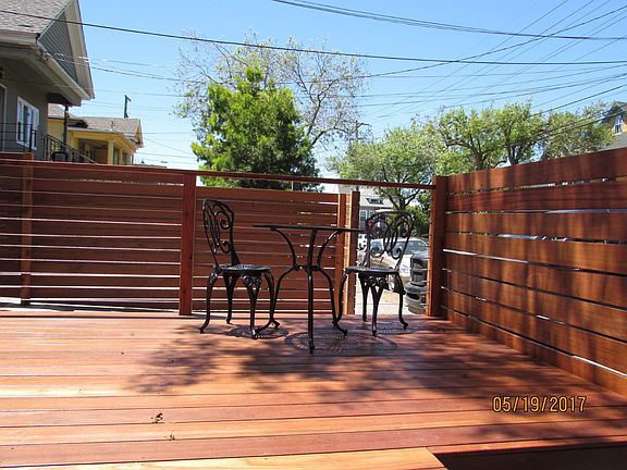 Parking Included! Bright & spacious, high-end stainless appliances and in-unit laundry! Beautiful Ipe deck is perfect for barbeques, tea time, or just watching the kids play in the park. Mid-Century Modern meets 21st-Century Contemporary Formerly the Owner's Unit (built as a single-family home), it features original hardwood floors in the living room and one bedroom, bamboo flooring in the dining room and kitchen, and plush wall-to-wall carpeting in the Master BR and 3rd BR. We added Charcoal Gray Slate tiling steps and landing, Granite counters, Bosch stove & microwave, and Fisher & Paykal refrigerator. New double-pane windows throughout. Location: Charming setting directly across the street from 63rd Street Mini-Park on dead-end block. Just steps to buses and BART. Walk to cafes, restaurants and shopping. Farmers Market one block away every Tuesday. City of Berkeley Schools, services and RENT CONTROL. Super easy access to Cal, Downtown Berkeley, Temescal, Rockridge, Downtown Oakland, San Pablo Ave, Emeryville... Welcome to Lorin! Low utility bills: LED lights throughout. Gas-filled windows and gas furnace will keep you cozy and save big-time on heating. Please reply by e-mail to Jordan for showing. $3500 Security Deposit plus $3500 1st Month Rent... $7000 to move in. Thank you! PARKING INCLUDED. Owner pays for trash/recycling.