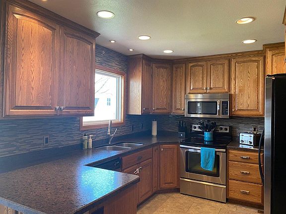 Move in ready condition found on this 4 bedroom, 2 bath home with updated flooring and paint thru-out, new doors and trim, updated kitchen & newer windows and siding. Large downstairs family room with built in cabinets, bedroom with egress window, storage room and 3/4 bath. Backyard is all fenced with sprinkler system, storage shed, 3 season porch and hot tub. Showing start on Friday, May 8th