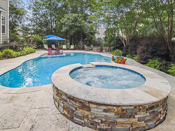LIFESTYLE is key to this beautiful home and backyard oasis, ready for move-in and entertaining. Nestled on a cul-de-sac lot in sought-after Union County side of Olde Sycamore Golf Plantation, this impeccably maintained home features beautiful stone fireplace in great room, gourmet kitchen with convection dual wall ovens and granite countertops, wet bar with wine fridge, open floor plan, study/office overlooking backyard, hardwood floors throughout main. Spacious primary suite with walk-in closets and sitting room. Step-up bonus room on second level is perfect recreation room. Screened-in porch brings the outside in and opens onto gorgeous backyard featuring spectacular SALTWATER SWIMMING POOL with travertine decking, shelf seating, and jacuzzi with waterfall; stone firepit; stunning landscaping and fenced-in yard. New roof in 2020.