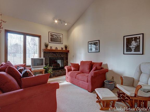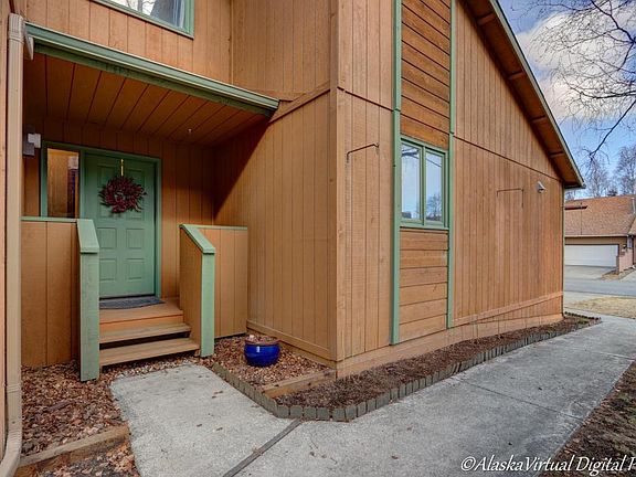 Wonderful cul-de-sac location in South Anchorage neighborhood convenient to parks & trails. Vaulted step down living room with handsome wood burning FP & lots of windows. Open kitchen & dining with sliding glass doors to back sunny South facing deck. Yard backs to Klatt elementary school. Upstairs features 2 bedroom 1 baths. 1/2 bath, laundry and extra storage down plus oversized 2 car garage.