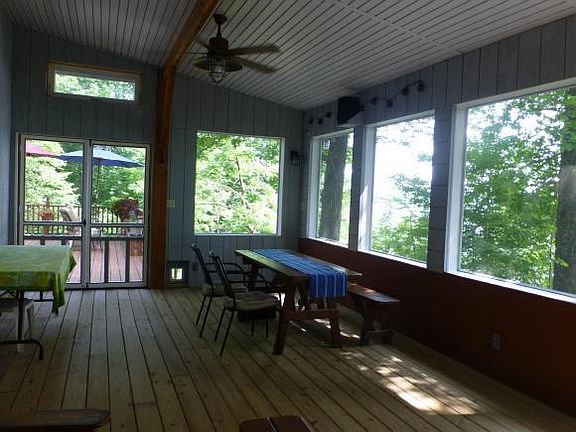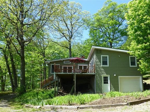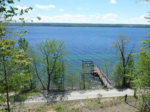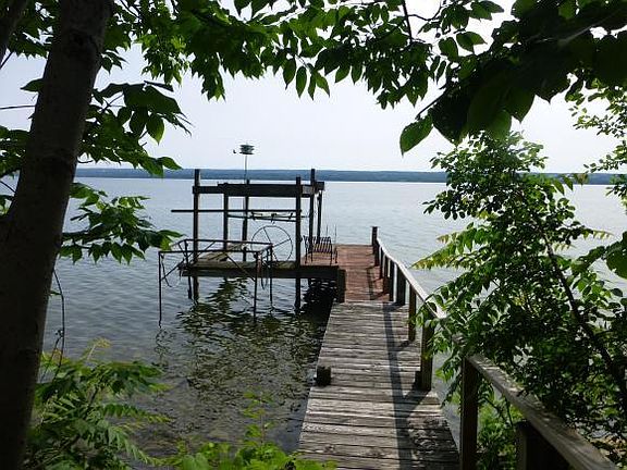 Amazing lakefront location on Cayugas E shore. 2 acres. Last house on road. Perfect lake house for entertaining with fantastic new 27x13 screened porch and adjacent deck with spectacular sunset/lake views. Open living/dining w/fireplace, wonderful kitchen, 2 bedrooms, large full bath with laundry, basement, central heat and AC. Separate 2-car garage w/2nd floor suitable for bedroom. 82 lakefront w/dock & gentle entry. Lots of parking. Come be delighted!