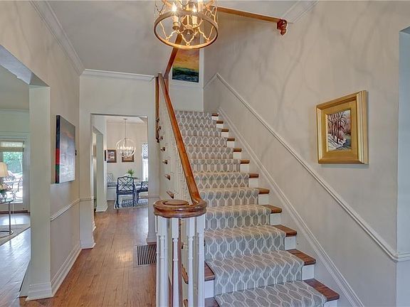 BEST HOUSE ON THE MARKET-Incredible price for location and amenities! 9 foot ceilings on the main floor, wood floors thru out and all windows have been replaced with PELLA. Kitchen has been updated and the large wine fridge is ideal for entertaining! Formal dining, 2 living areas plus basement living room with bar and fireplace. 3rd floor bedroom/ living has a full bath and is a wonderful space for a teen, young adult or a home office/exercise room! All 4 bedrooms have adjoining bathrooms. Multiple fireplaces! The electric gate across the driveway is ideal to ensure a safe area for kids to plaY and great for protecting property too. Your will Love the backyard and the cabana is perfect for GUESTS, a parent or entertaining! FLEXIBLE SPACES AND A FANTASTIC PRICE
