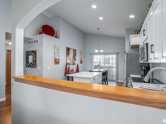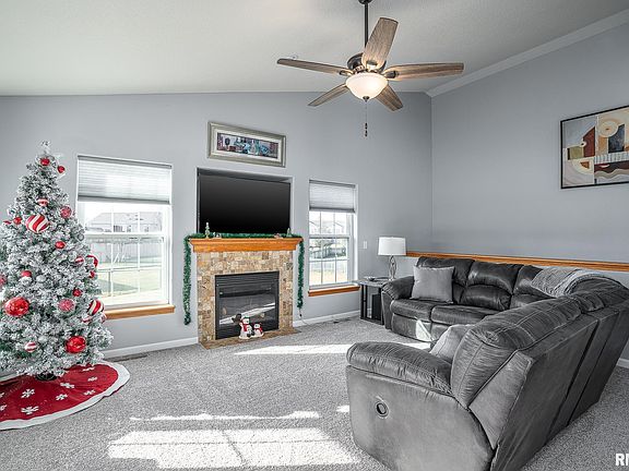 This is the type of property where you step into and have that sense of home where you know, it's the one! Welcome to this stunning ranch offering 4 bedrooms, 3 full bathrooms, a meticulous & organized 3 car heated garage, over 2100 finished square feet, and more! Upon entering, you'll feel the sense of space with soaring vaulted ceilings, a warm and cozy fireplace, and all the natural light pouring in through the windows. Notice the gorgeous arched opening to the lavish modern kitchen, complete with quartz white veined countertops, stainless appliances, and a functional island. You'll also love that the appliances will stay, as will the washer and dryer located in the laundry room, off the kitchen and the garage entrance. Enjoy heading outside the patio door to entertain in the warmer months with a deck off the kitchen! With 3 bedrooms on the main level, a beautiful primary suite complete with double vanity sinks and granite tops, and a 2nd full bath, you are sure to love the ease of this great floor plan. Head downstairs to the finished basement, where it's a large and open space, offering another full bathroom, and large bedroom! Don't overlook the large 13x21 storage room!! The seller did some extensive exterior work by adding the additional concrete parking slab, and filling in the entire perimeter of the house with modern gray slate rock! This entire home is tasteful and charming. Don't miss out!