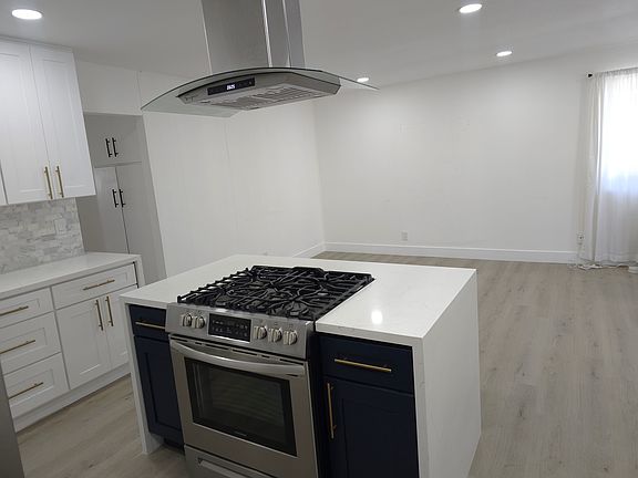 Beautifully spacious upstairs 2 Bedroom, 2 Bathroom unit! The open floor plan features a gorgeous kitchen with newly quality quartz counter-tops, a large island with a striking waterfall edge, soft-close custom cabinetry, stainless appliances, & white shaker cabinets. The unit also features newly bathrooms (vanities, rain shower head, sleek bathtub) recessed lighting, and nice flooring. Includes washer/dryer inside the unit and refrigerator. Master room has two mirrored large closets. Nice white curtains and white shower curtain installed. One car garage as open space available. Don't miss the opportunity to call this your home. 1 year lease minimum. Cats and small dogs allowed. Renter pays electricity and gas. No smoking. washer/dryer and refrigerator inside the unit!