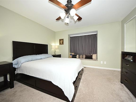 Open House CANCELLED. Donations still accepted of canned/boxed goods for St Joachim & Ann. Box will be on front porch for donations. This 3 bed/3 bath brick-front ranch welcomes you w/a formal entry foyer that flows naturally into the massive great room featuring cathedral ceiling, skylights, brick-surrounded fireplace & atrium walk-out to deck, patio & level, fenced yard. You will love the bright kitchen & dining room that includes ample cabinetry, ceramic tile backsplash & sunny bay window. Main floor laundry. Master suite featuring a box window with bench, walk-in closet w/mirrored door & private bath with walk-in shower. The finished LL is a tremendous expansion to your living space adding a huge family room, rec room w/recessed bar sink, 3rd full bath & ample storage. Oversized 2-car garage. Lots of updates- Patio, Siding & Sump Pump-2022; Roof, Deck, LL Bathroom-2021, HVAC, MF bathrooms, HVAC, Kitchen & Garage Door-2020, Carpet & Vinyl Plank-2019.