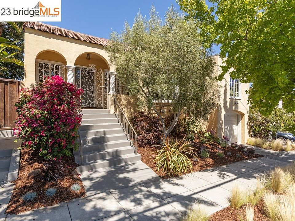 Delightful Spanish Mediterranean home located in the heart of the Glenview district! Upon arriving, you will be greeted by the romantic period ironwork and vibrant pink Bougainvillea. Step inside and find inviting spaces and a breezy open floorplan. The large living room boasts stunning hardwood floors, numerous arched windows and a cozy fireplace. Adjacent to the living room is the spacious dining room ideal for hosting dinner parties and countless celebrations. Stylish and recently updated, the eat-in kitchen is every chef's dream and is equipped with stainless steel appliances, subway tile, a large pantry and plenty of cabinet space! California living at it's best, the kitchen leads to the spacious backyard; imagine friends and family gathering on the large deck or meandering through the colorful garden. Both bedrooms are of ample size and one features a bonus space, perfect for home office or library. The conveniently located hall bath features new vanity and light and shower over tub combination. Do not miss the attached garage with laundry and great storage options! All this and just blocks to newly built Glenview Elementary, shops and restaurants along Park Blvd, Dimond Park, Dimond commerce, highways and transport. What a wonderful place to call home!