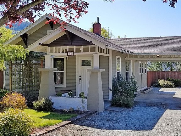 What a gem! Absolutely Super Charming Craftsman on an awesome 1/4 acre lot w/small outbuildings in town near Hillcrest Park. Lives larger than Sq. Ft. shows. What it lacks in size it makes up for everywhere else. Bath & Kitchen updated around 10 years ago. Small 3rd bdrm/use as nursery or ?. Covered front porch, Attached carport, tons of parking (RV too), fenced yard, large deck overlooking beautiful big flat yard w/cool small shop w/power & garden shed. Super appealing & great location.