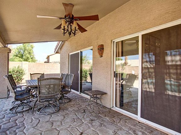 Fantastic single level Home with soothing interior palette, soaring ceilings, beautiful tie floor, window blinds, ceiling fans, and spacious open floor plan. Stunning eat-in kitchen features center island w/stone accent, granite counters, breakfast bar, pantry, SS appliances, and wood cabinetry with stylish hardware. Perfect gathering place for family and friends. Cozy family room fireplace, patio access, and plant shelf. Den can be used as a 4th bedroom. Grand master retreat boasts patio access, walk-in closet, and private en suite. Spectacular backyard with covered paver patio, sparkling pool, in a responsibly cared for NON-HOA COMMUNITY. Will NOT disappoint!